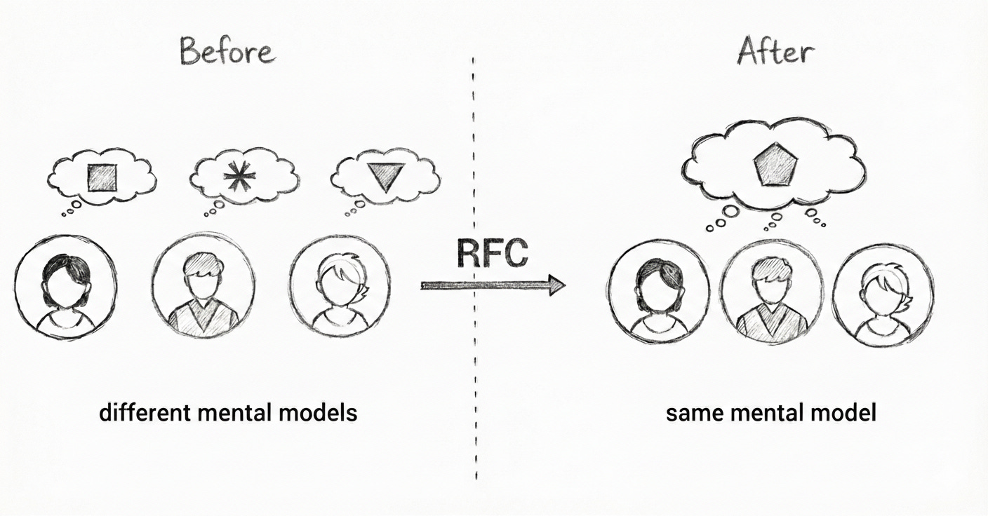 Similar situations, maybe not that dramatic, happened many times throughout my career, so I started to see the pattern and look for a solution. I needed a way to make mental models visible — not just assumed. That’s when I stumbled on the idea of internal RFCs.